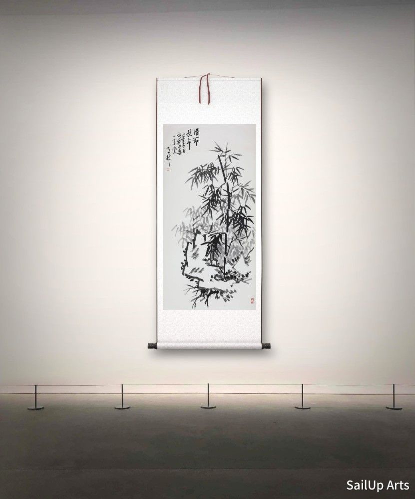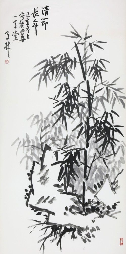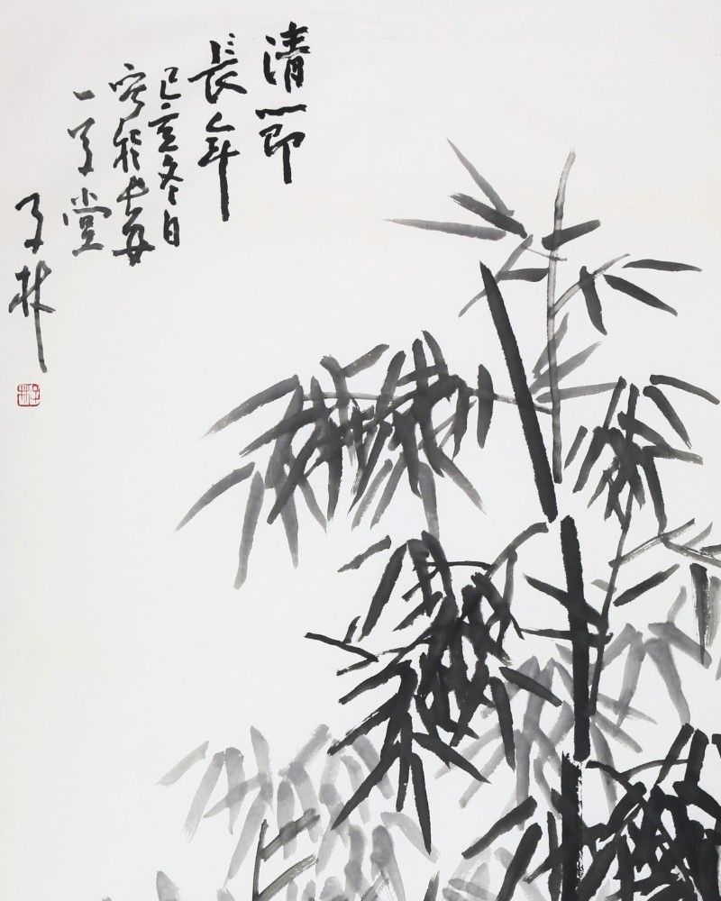 This ink painting of bamboo and rocks was created by Mr. Chen Zilin on a winter day in the year Ji Hai. The work features bamboo and stones as its main subjects, showcasing the elegant style and profound brushwork skills typical of Chinese painting. In the painting, the bamboo is depicted with varying intensities of ink, creating a sense of depth in the bamboo leaves through these changes in shade. The strokes used for the bamboo stalks are firm and vigorous, reflecting the resilient nature of the bamboo. The imagery in the painting is simple yet profound, using the loftiness of the bamboo to symbolize perseverance and integrity, reflecting the artist's admiration and pursuit of noble character. The inscription "清节长年" (Integrity Throughout the Years) is a tribute to the noble qualities represented by the bamboo. Overall, this painting successfully integrates the artistic charm and philosophical thought of traditional ink painting, offering viewers a rich aesthetic experience and spiritual enjoyment through its exquisite brushwork and profound artistic conception.