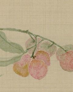 This painting uses extremely simple brushstrokes to depict a cluster of ripe lychees, the fruit displaying an attractive red color that contrasts vividly with the green leaves, vividly portraying the freshness and allure of the lychees. The inscription beside the painting, "Near the west of Jin River, the water is green, and lychees are red on the mountain tops after the new rain. Many taverns lie by the thousand-mile bridge, where do travelers love to stay?" paints a vivid scene: near the Jin River, the mountain tops with freshly rained-on lychees appear bright red. The beautiful river scenery and the surrounding taverns attract passersby. The verse captures the prosperity and beauty of the area, as well as reflecting people's longing for such beautiful scenery and delicious flavors.