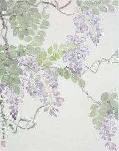 This painting titled "Wisteria" was created by the artist Gao Ke, showcasing his masterful skills in the detailed brushwork of traditional Chinese bird-and-flower painting. The painting is abundant with flourishing wisteria blossoms, rendered in subtle hues of purple and green, delicately depicting the graceful sway and natural growth of the wisteria. The artwork captures not only the beautiful appearance of wisteria but also conveys a vivid vitality and the essence of spring through meticulous attention to detail. The twisting and winding vines symbolize nature's boundless growth and vigorous development, while the drooping posture of the flowers imparts a sense of softness and poetry. The inscription "Zi Yu" in the painting, meaning "purple jade," describes the wisteria flowers as being as lustrous and lovely as jade, adding a deeper layer of meaning to the artwork. This painting is well-suited for hanging in a study or living room, adding a touch of nature's freshness and elegance to the space.